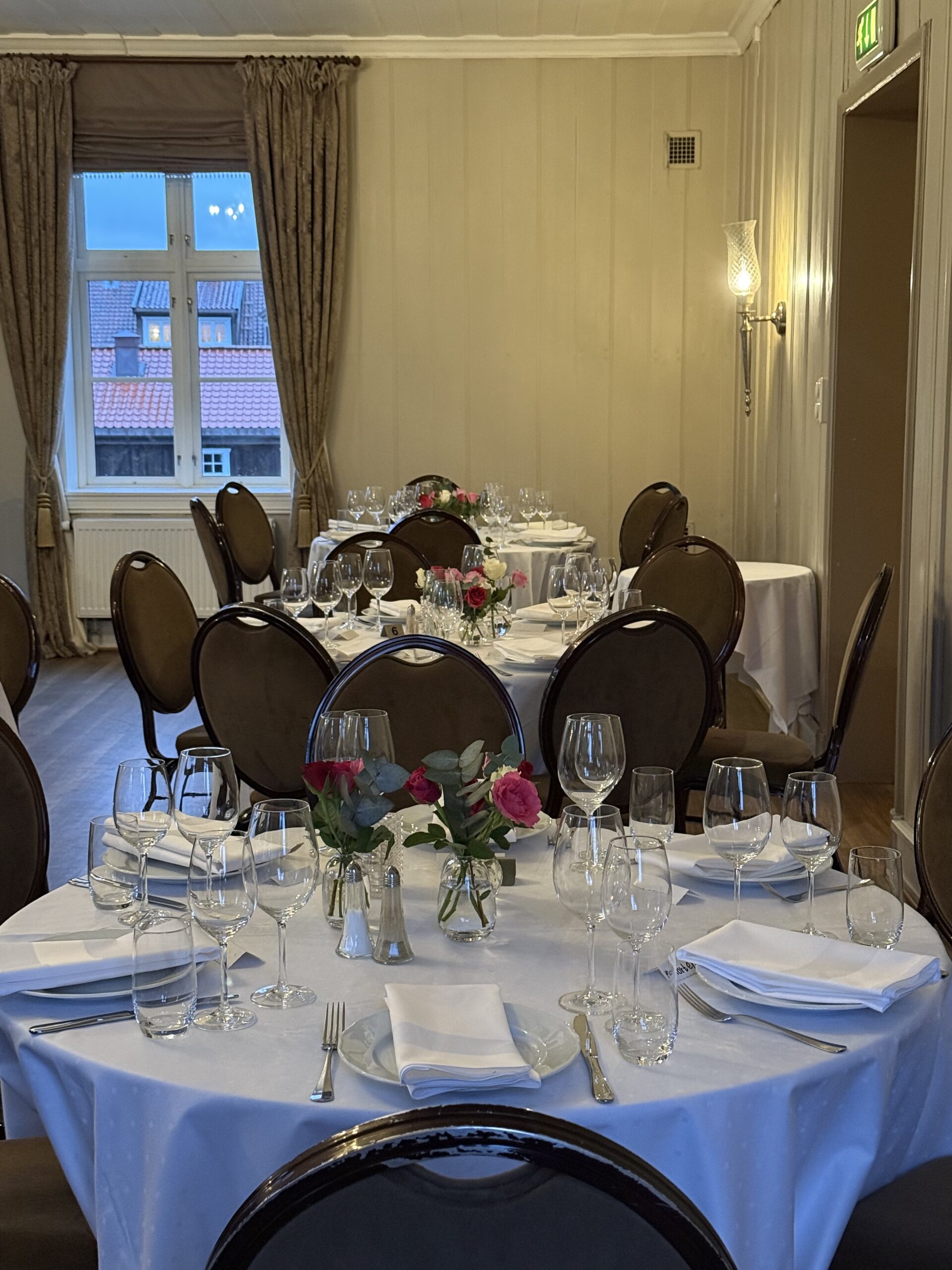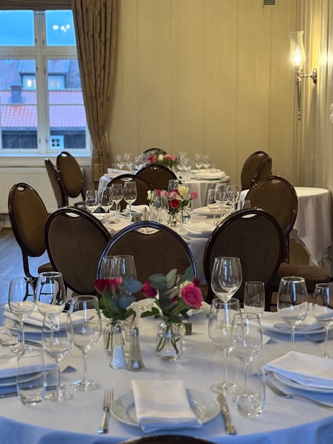 I1. etasje dekkes det maksimalt til 100 personer. På runde bord dekkes det maksimalt til 72 personer.
